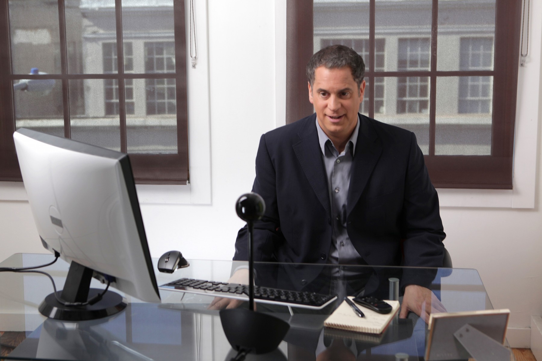 With a compact footprint and motorized eye-level camera, BCC950 is designed with small groups in mind. An omni-directional speaker and noise-cancelling microphone allow all meeting members to clearly hear and be heard up to 8 feet away. BCC950 is designed for use in private offices, home offices, or virtually any semi-private space.