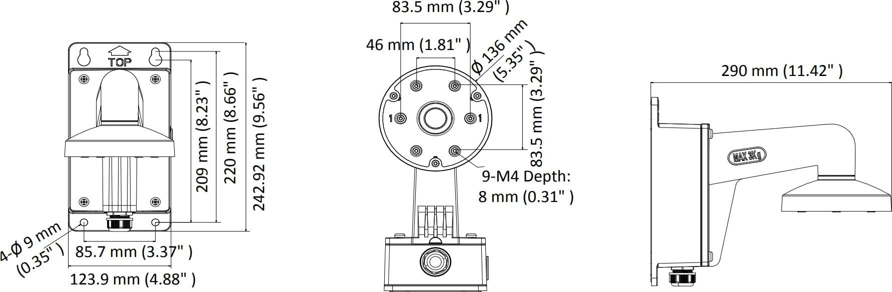 Hikvision DS-1273ZJ-135B. Type: Mount, Brand compatibility: Hikvision Digital Technology, Product color: White. Diameter: 5.35″ (13.6 cm), Depth: 9.57″ (243 mm), Height: 11.4″ (290 mm). Quantity per pack: 1 pc(s)