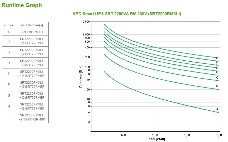 APC Smart-UPS. UPS topology: Double-conversion (Online), Output power capacity: 2.2 kVA, Output power: 1980 W. AC outlet types: C13 coupler, C19 coupler, Power plug: C20 coupler, AC outlets quantity: 10 AC outlet(s). Battery technology: Sealed Lead Acid (VRLA), Battery capacity: 367 VAh, Typical backup time at full load: 3.9 min. Form factor: Rackmount/Tower, Product color: Black, Rack capacity: 2U. Compliance certificates: RoHS, Certification: CE, CE Mark, EAC, EN/IEC 62040-1, EN/IEC 62040-2, RCM, VDE, REACH