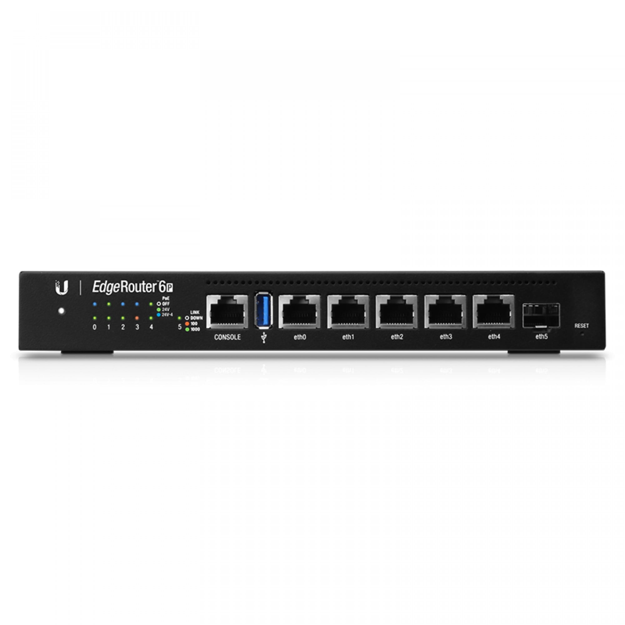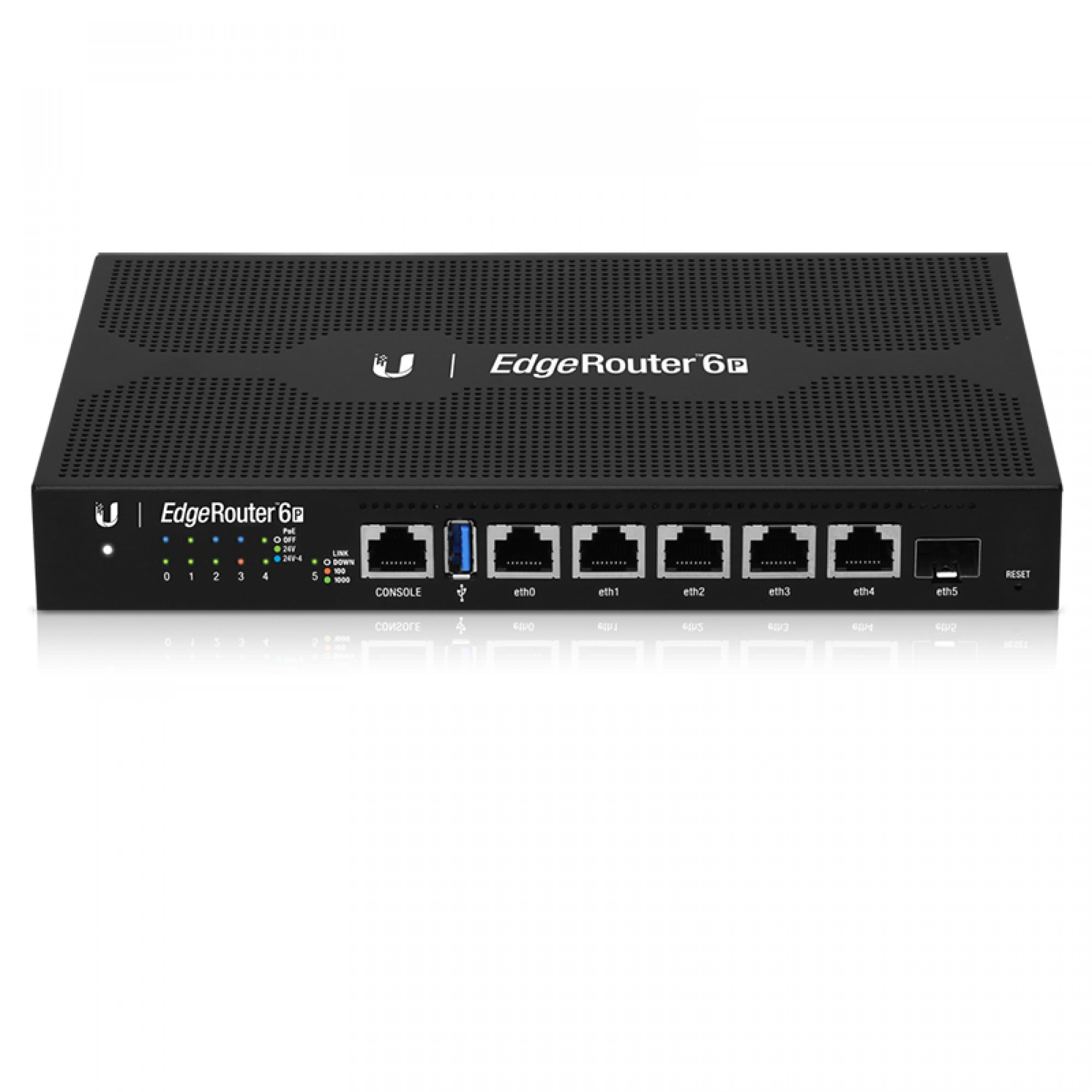 The EdgeRouter™ 6P offers next-generation price/performance value: up to 3.4 million packets per second processing with a line rate of up to 6 Gbps.