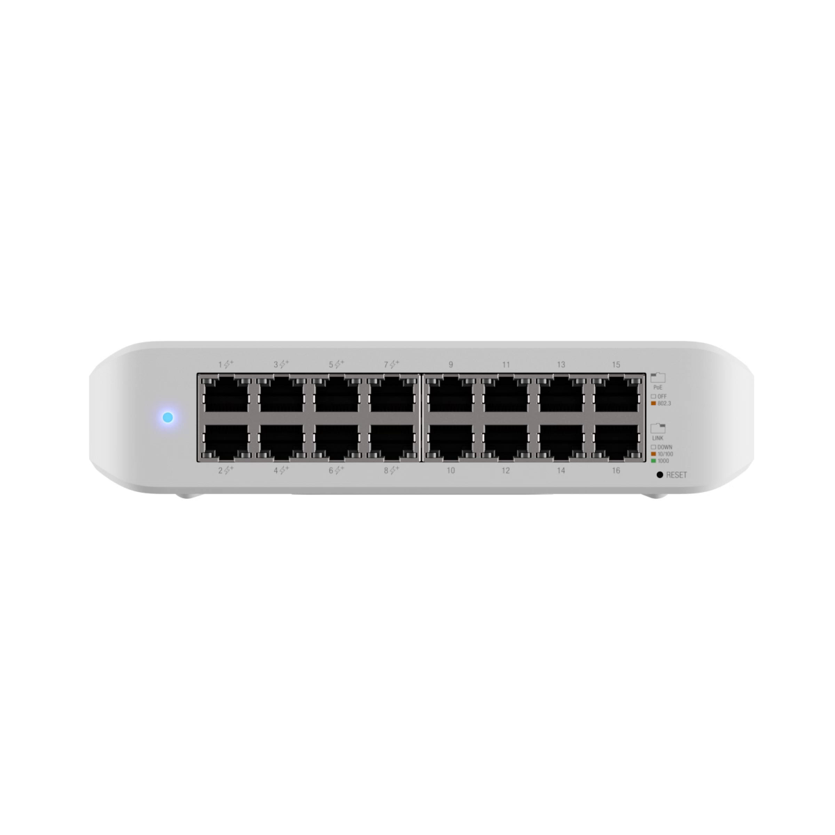 Ubiquiti UniFi Switch Lite 16 PoE. Switch layer: L2. Basic switching RJ-45 Ethernet ports type: Gigabit Ethernet (10/100/1000), Basic switching RJ-45 Ethernet ports quantity: 16. Switching capacity: 16 Gbit/s. Networking standards: IEEE 802.3af, IEEE 802.3at. Power connector: AC-in jack. Power over Ethernet (PoE). Wall mountable