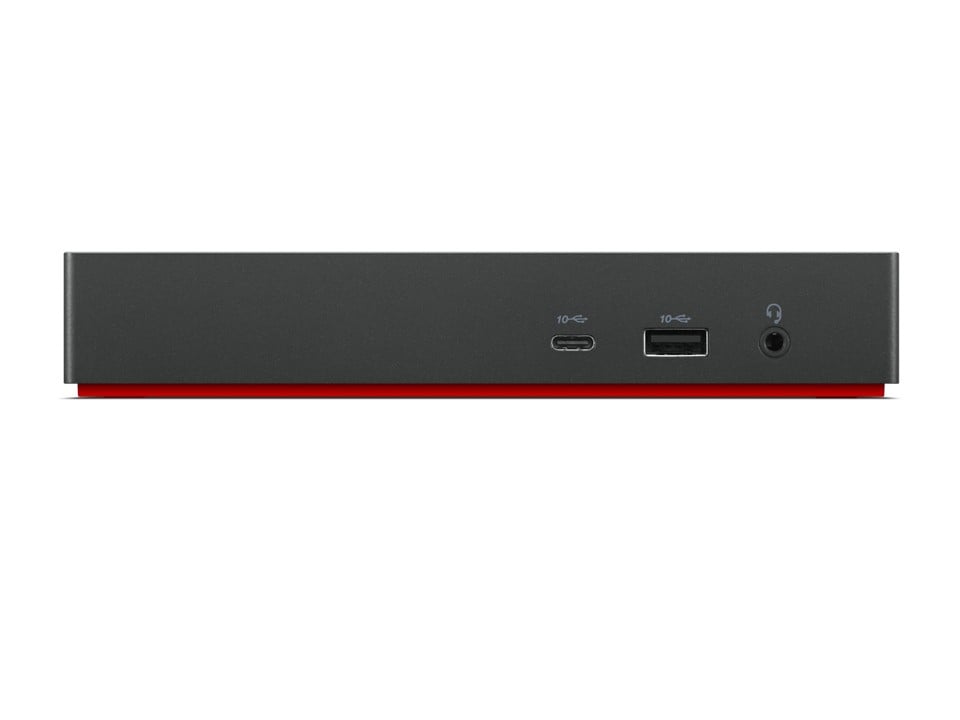 Lenovo ThinkPad Universal USB-C Dock. Connectivity technology: Wired, Host interface: USB 3.2 Gen 1 (3.1 Gen 1) Type-C. Ethernet LAN data rates: 10,100,1000 Mbit/s. Product color: Black, HD type: 4K Ultra HD, Maximum digital resolution: 3840 x 2160 pixels. Power source type: USB, Power connector: USB Type-C, Power supply: 90 W. Windows operating systems supported: Windows 10, Windows 7