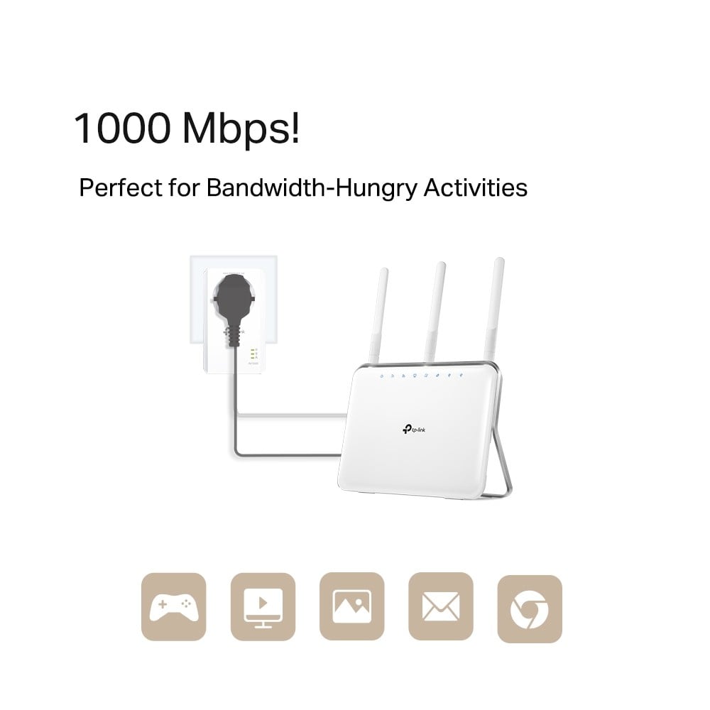 The TP-Link AV1000 Gigabit Passthrough Powerline Starter Kit> is an innovative solution designed to extend your wired network effortlessly in both home and office environments. Utilizing existing electrical wiring, this kit provides a reliable and high-speed internet connection with a maximum data transfer rate of 1000 Mbit/s. Adhering to the HomePlug AV2 standard, it ensures compatibility with a wide range of devices and network configurations, making it an ideal choice for users seeking to enhance their connectivity.