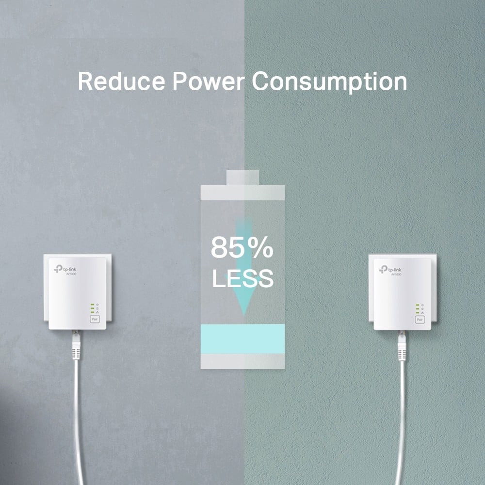 Each adapter in the TP-Link TL-PA7017 Kit features a Type F power plug and is designed for low power consumption, typically using only 2.3 W during operation and 0.5 W in standby mode. This energy-efficient design not only helps reduce your electricity bill but also contributes to a more sustainable environment. The internal antennas and LED indicators for LAN, PLC, and power status provide clear visibility into your network activity and connection strength, making it easy to monitor performance.