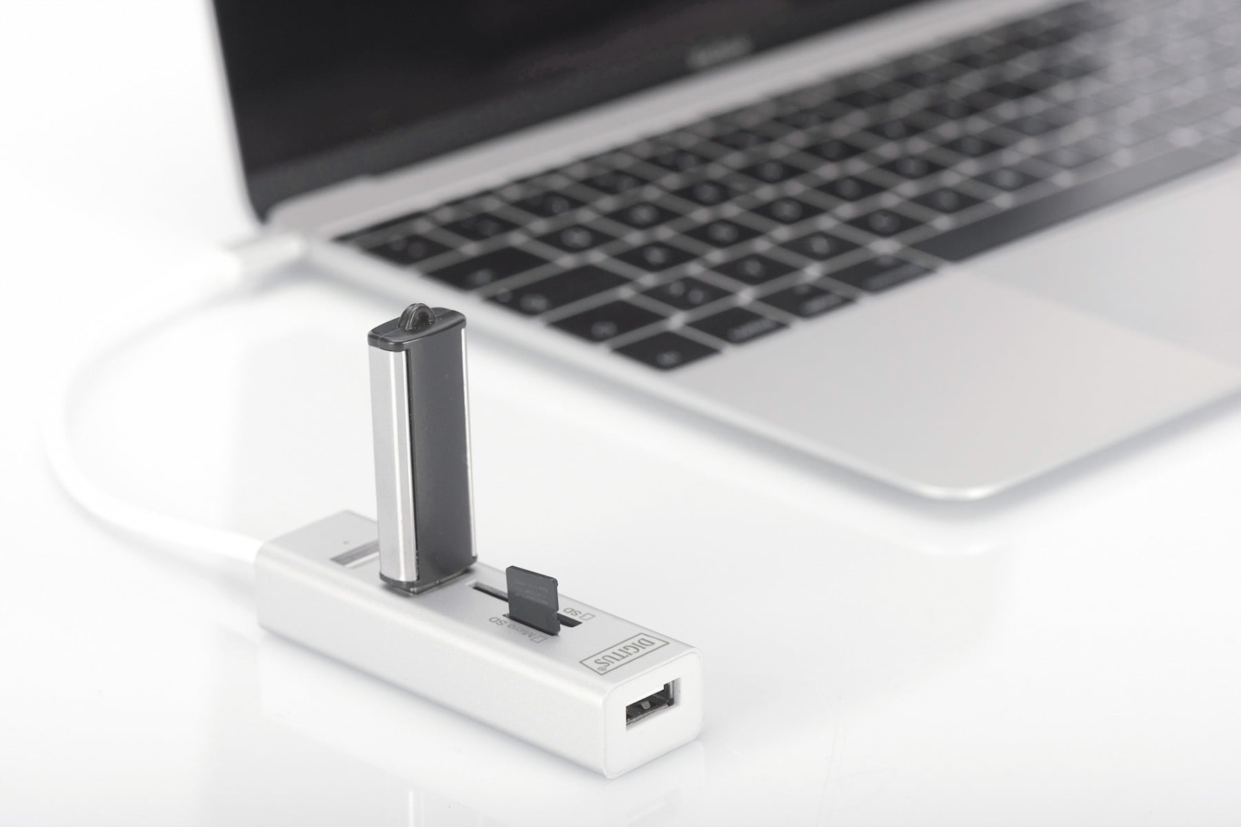Digitus DA-70243. Compatible memory cards: MicroSD (TransFlash), SD, Product color: White, Data transfer rate: 480 Mbit/s. Interface: USB 2.0. Width: 0.709″ (18 mm), Depth: 0.906″ (23 mm), Height: 0.63″ (16 mm). Package width: 3.35″ (85 mm), Package depth: 5.51″ (140 mm), Package volume: 535.5 cm³. Windows operating systems supported: Windows 10, Windows 10 Education, Windows 10 Education x64, Windows 10 Enterprise, Windows 10…, Mobile operating systems supported: Android