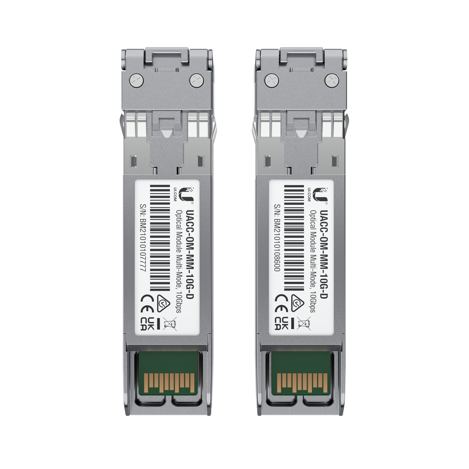 Ubiquiti UACC-OM-MM-10G-D-2. SFP transceiver type: Fiber optic, Maximum data transfer rate: 10000 Mbit/s, Fiber optic connector: LC. Product color: Silver, Housing material: Metal. Power consumption (typical): 0.8 W. Quantity per pack: 2 pc(s)