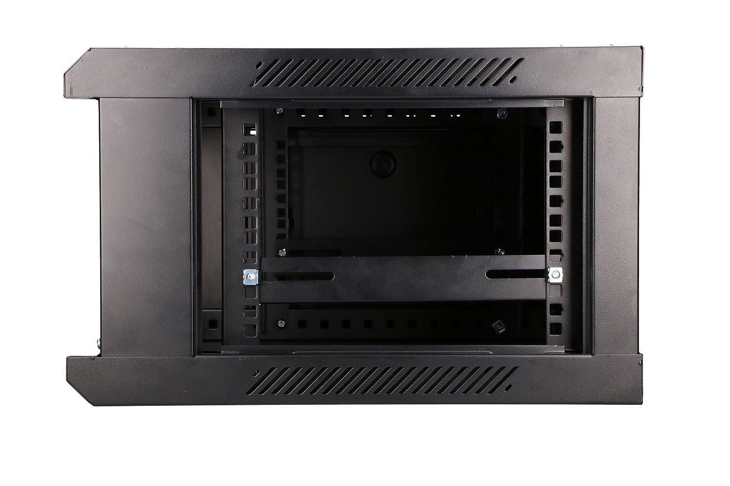 Rack cabinet EXTRALINK 4U 600X450 Black. The Extralink rack cabinet is designed for wall mounting in offices, network server rooms and CCTV control rooms. External walls are made of cold-rolled steel sheet, while the front door has a tempered glass pane with the possibility of opening to the left or right side.