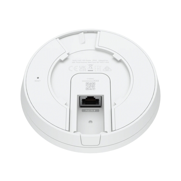 Ubiquiti UVC-G5-Dome. Type: IP security camera, Placement supported: Indoor & outdoor, Connectivity technology: Wired. Mounting type: Ceiling/wall, Product color: White, Form factor: Dome. Lens viewing angle, horizontal: 102.4°, Lens viewing angle, vertical: 71.4°, Lens viewing angle, diagonal: 134.3°. Sensor type: CMOS. Night vision distance: 10 m, LED type: IR
