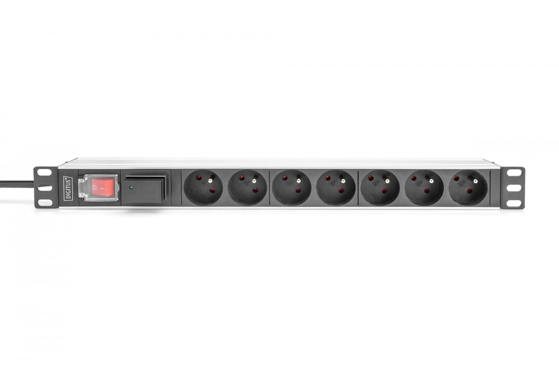 Digitus DN-95407-FR. PDU types: Switched, Rack capacity: 1U, Form factor: Rackmount. AC outlets quantity: 7 AC outlet(s), AC outlet types: Type E, Power plug: Type F. Cable length: 78.7″ (2 m). Nominal input voltage: 230 V, Maximum current: 16 A, AC input frequency: 50 – 60 Hz. Width: 1.77″ (45 mm), Depth: 1.77″ (45 mm), Height: 19″ (482.6 mm)