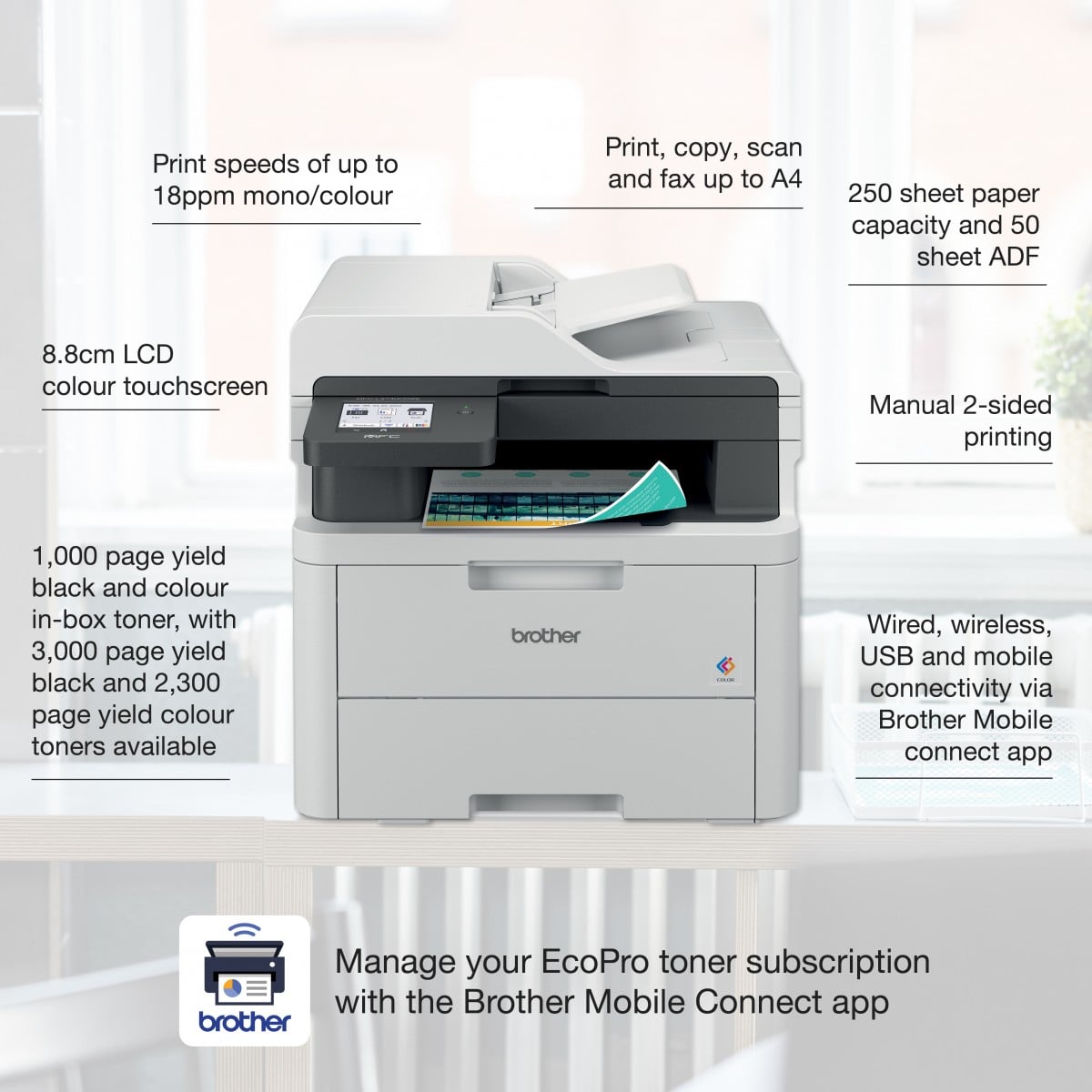 Brother MFC-L3740CDWERE1 4-in-1 Laser Printer – 18PPM, 512MB, USB, WiFi, 2400 DPI