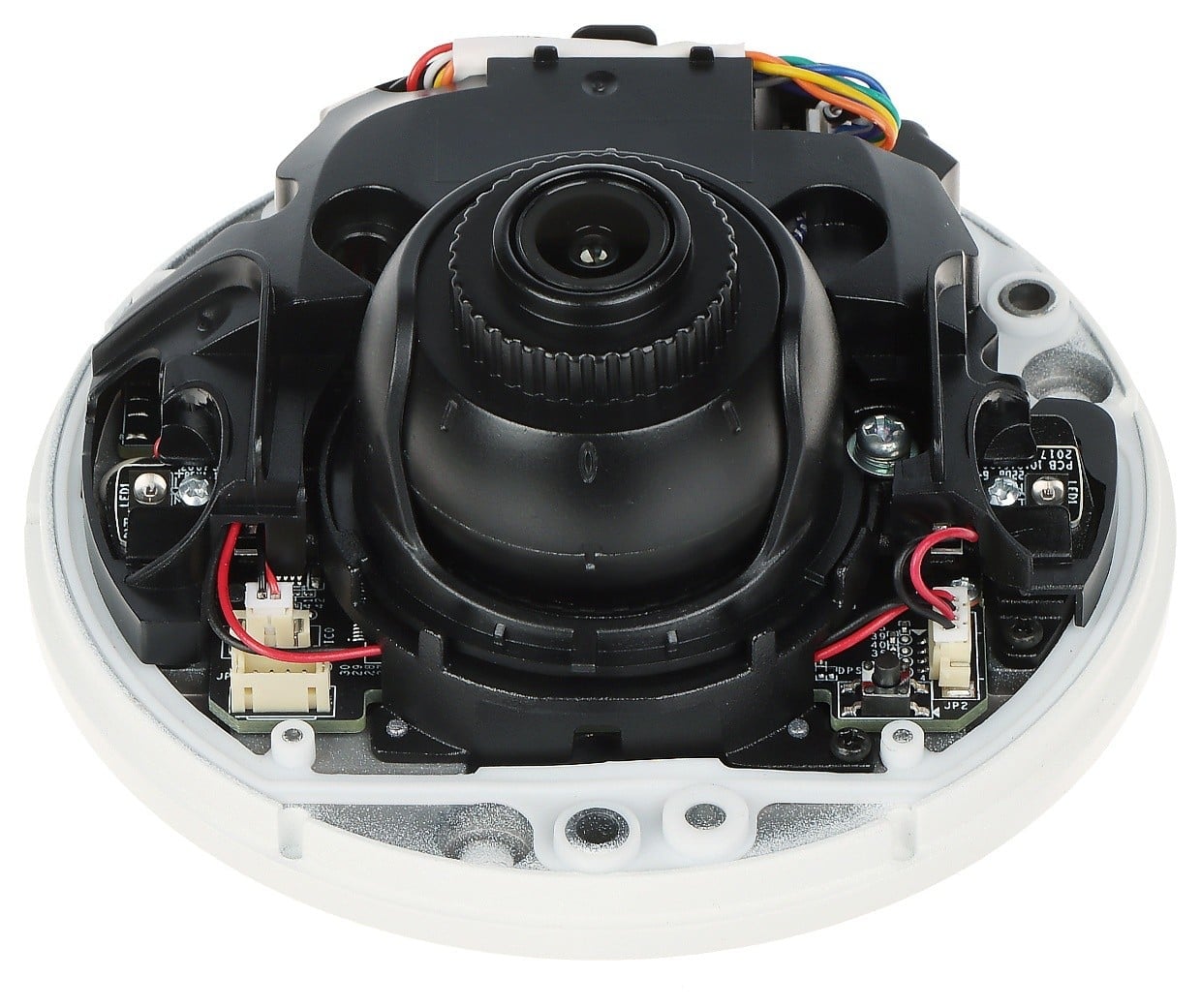 The camera includes a built-in microphone that captures audio within its vicinity, adding an additional layer of security through sound recording. With a lens focal length of 2.8mm, it provides a wide-angle view, making it suitable for covering expansive areas without the need for multiple cameras.