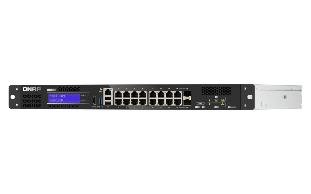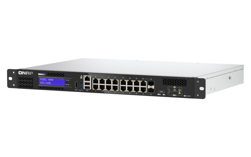 QNAP QGD-1600. Switch type: Managed. Basic switching RJ-45 Ethernet ports type: Gigabit Ethernet (10/100/1000), Basic switching RJ-45 Ethernet ports quantity: 16, USB 2.0 ports quantity: 2. Full duplex. MAC address table: 8000 entries, Switching capacity: 32 Gbit/s. Networking standards: IEEE 802.3ab, IEEE 802.1p, IEEE 802.3u, IEEE 802.3x, IEEE 802.3z, IEEE 802.1Q. Rack mounting, Form factor: 1U