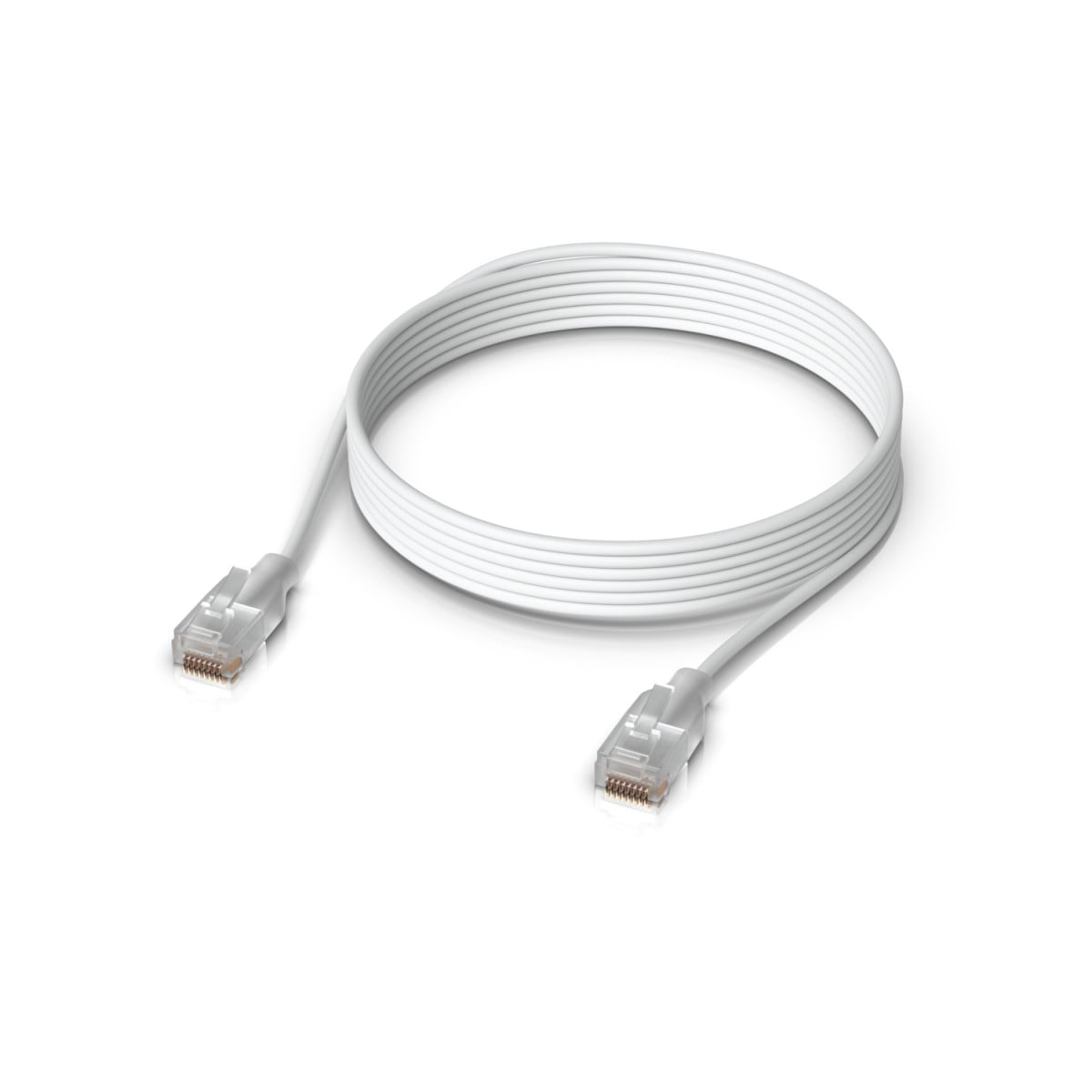 Ubiquiti UACC-Cable-Patch-EL-3M-W. Cable length: 118.1″ (3 m), Cable standard: Cat6, Connector 1: RJ-45, Connector 2: RJ-45, Product color: Translucent, White