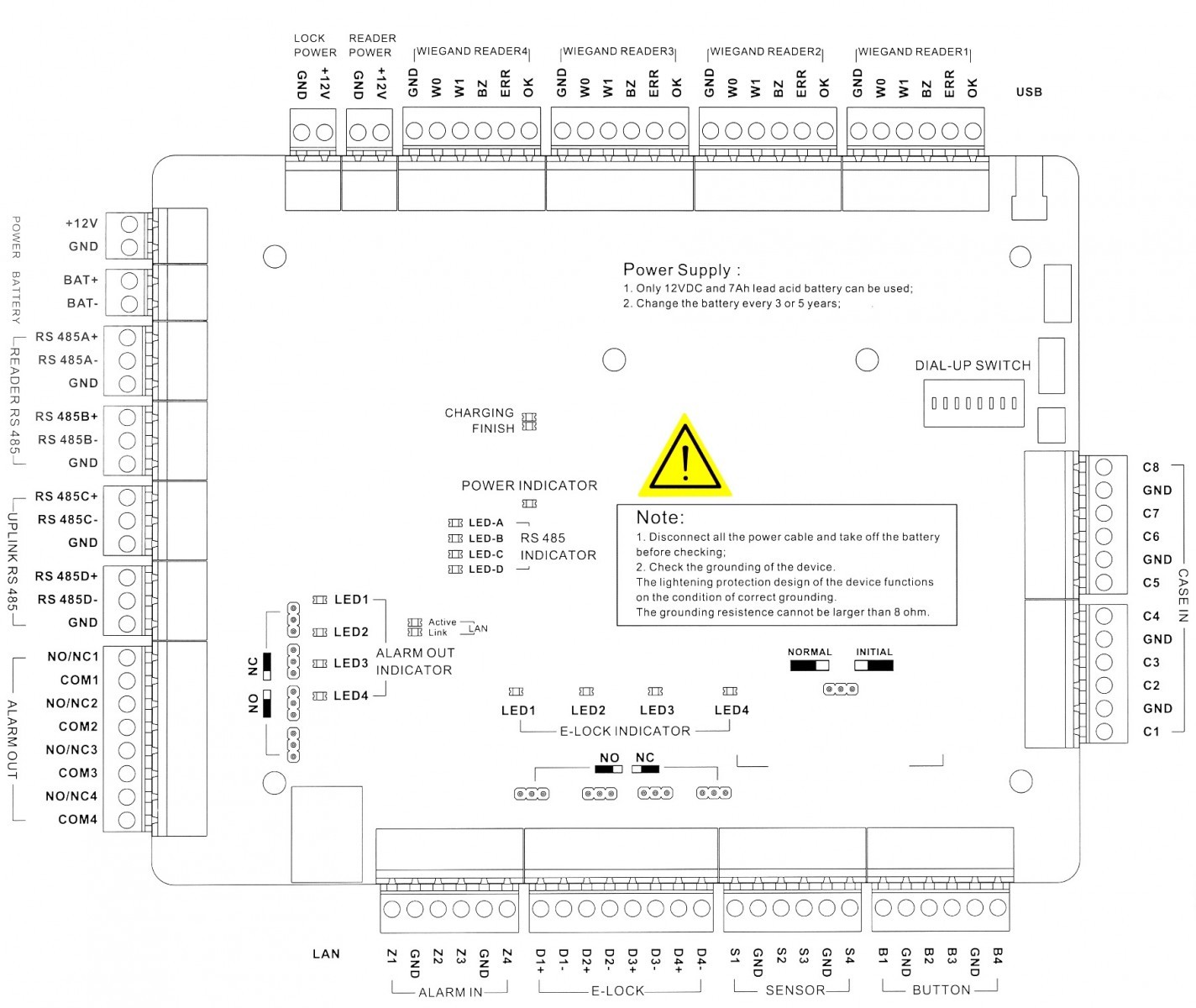 The access controller features both RS-485 and Wiegand interfaces, allowing seamless integration with third-party card readers. It supports time synchronization via NTP and can operate with a standby battery, ensuring continuous functionality. Additionally, data is permanently saved even when the access controller is powered off, providing peace of mind that critical information is never lost.