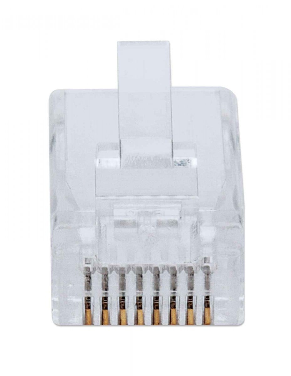 Intellinet 791090. Connector(s): RJ45, Product color: Transparent, Material: Polycarbonate. Width: 0.89″ (22.6 mm), Depth: 0.457″ (11.6 mm), Height: 0.327″ (8.3 mm). Quantity per pack: 100 pc(s), Package weight: 5.29 oz (150 g)