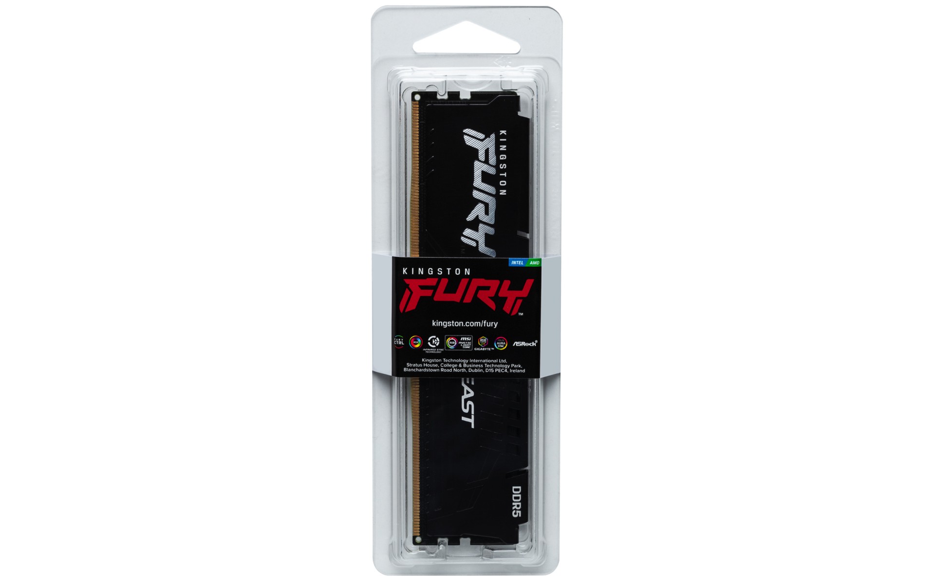 Kingston Technology FURY Beast . Component for: PC, Internal memory: 32 GB, Memory layout (modules x size): 1 x 32 GB, Internal memory type: DDR5, Memory form factor: 288-pin DIMM, CAS latency: 40