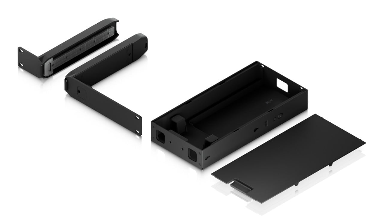 Ubiquiti UACC-UCG-Industrial-RM. Product type: Mount, Housing material: Polycarbonate (PC), Galvanized steel, Product color: Black. Width: 8.01″ (203.5 mm), Depth: 7.96″ (202.2 mm), Height: 1.72″ (43.8 mm)